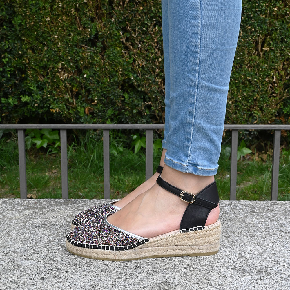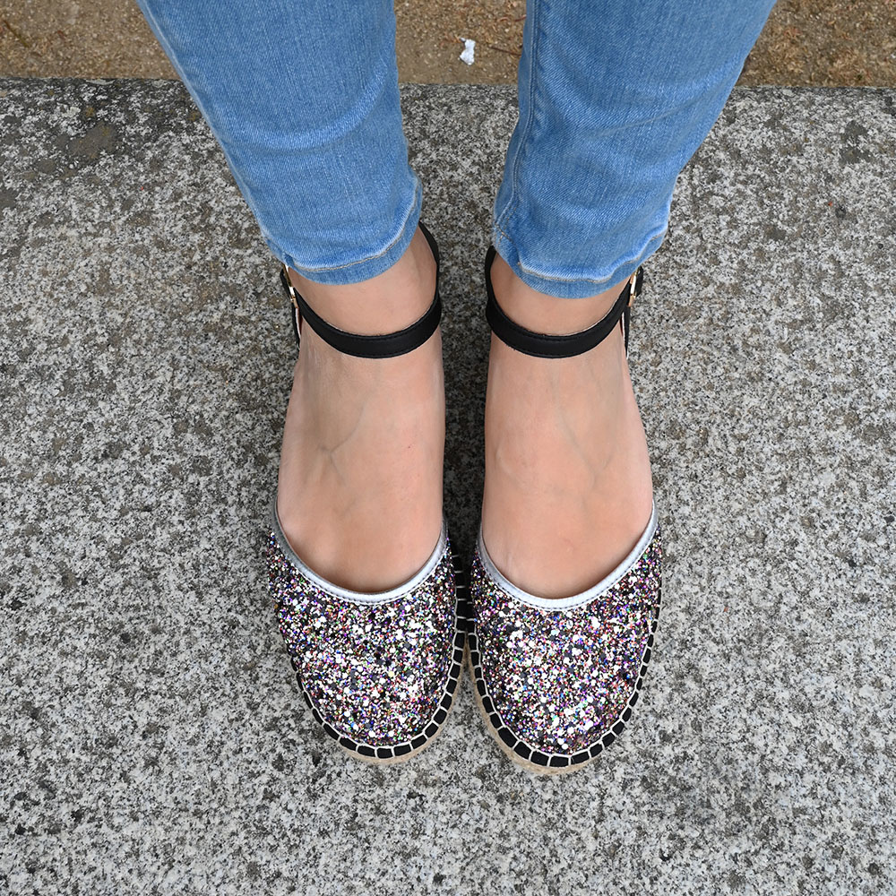 ✔︎ Zapato: Hechas a mano. Exterior en piel y tejido con glitter. Interior de tejido técnico.