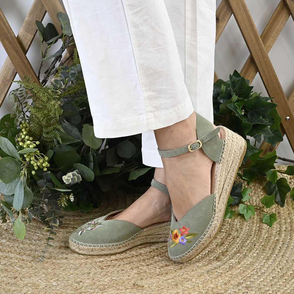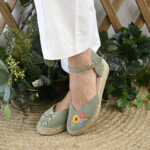 Imagina caminar con la esencia de un jardín a tus pies. Nuestras alpargatas Colibrí en color verde musgo no son solo un accesorio, son una pequeña obra de arte que celebra la asimetría y la naturaleza.