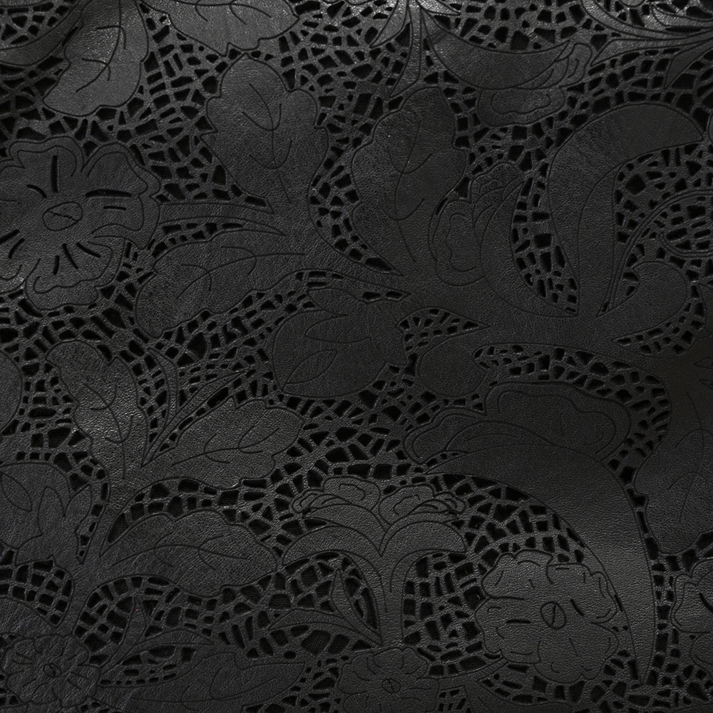 La verdadera joya de este diseño es su cautivador patrón de encaje floral y arabescos, grabado con precisión láser sobre la piel. Este efecto de «vellón de encaje» crea un juego de luces y sombras fascinante, aportando una feminidad y originalidad inigualables.