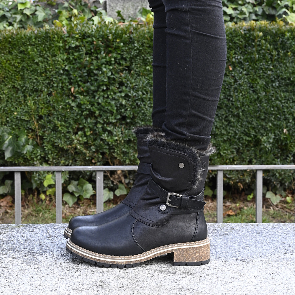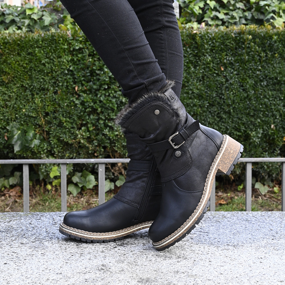 ✔︎ Confort: Plantilla acolchada. Forro de textil suave y cálido de borreguito con tecnología Kimbertex (membrana impermeable). Pelo sintético en la parte superior. Cierre con cremallera. Ligero ajuste con hebilla