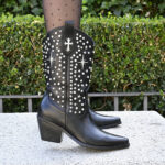Dale fuerza y personalidad a tus looks con estas botas cowboy negras con tachas plateadas, ideales para un estilo atrevido y actual. Inspiradas en el clásico diseño western, combinan el carácter del color negro con el brillo de las tachas plateadas, aportando un toque rebelde y sofisticado que no pasa desapercibido.