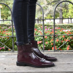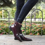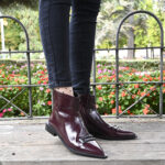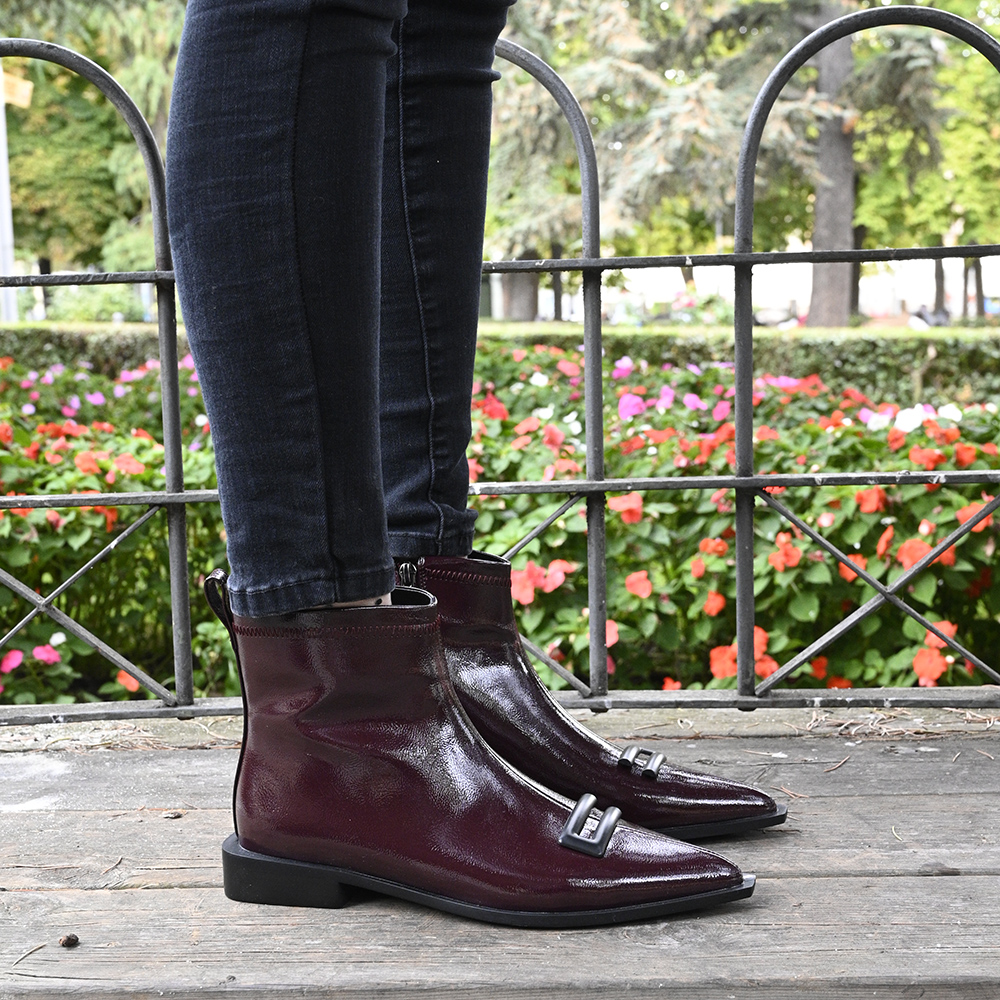 Harlem está diseñado para aportar un toque chic al día a día. Este botín plano en charol burdeos combina comodidad y estilo en partes iguales. Su punta afilada estiliza el pie, mientras que la hebilla decorativa en tono mate añade un guiño moderno y minimalista.