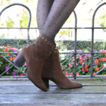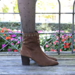 Elma está confeccionado en un suave y gustoso serraje camel tratado con tecnología «hydrovelour». El diseño está inspirado en las populares lineas camperas, tendencia de la temporada. Su acabado en punta junto a la silueta de la caña realzan la silueta del pie con gran feminidad y estilismo. Cuenta además con adorno de ojetes en la parte superior en tono champan, un detalle que suma carácter y personalidad al diseño.