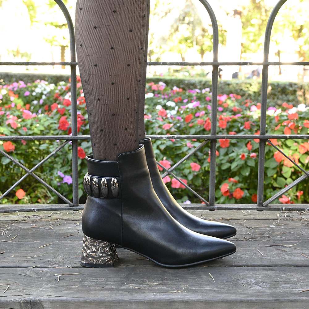Eleva tu estilo con estos botines negros de efecto napa negra con adornos en color pewter, diseñados para aportar un toque de distinción a tus looks. El negro intenso combina con todo, mientras que los detalles pewter añaden un aire moderno y elegante que no pasará desapercibido.