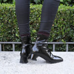 Esta confeccionado con materiales elásticos de alta calidad con efecto charol craquelado negro, para que se ajusten a la perfección a tu pie. Su silueta femenina y estilizada acaba ligeramente en una punta redondeada. Y lleva un cómodo tacón escultórico de 4cm con acabado negro brillante, perfecto para usar diariamente con infinidad de outfits.