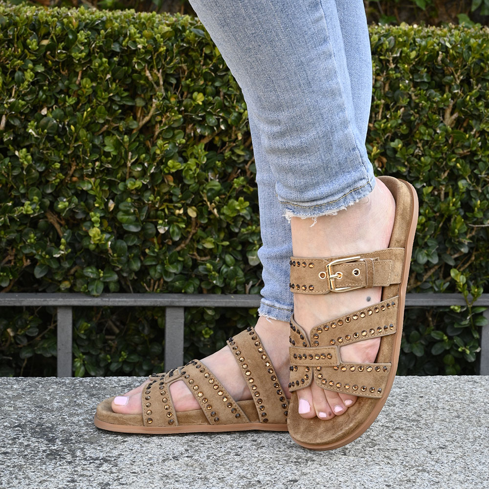 Su textura de ante en tono tierra invita al tacto, ofreciendo una suavidad que abraza el pie desde el primer momento.