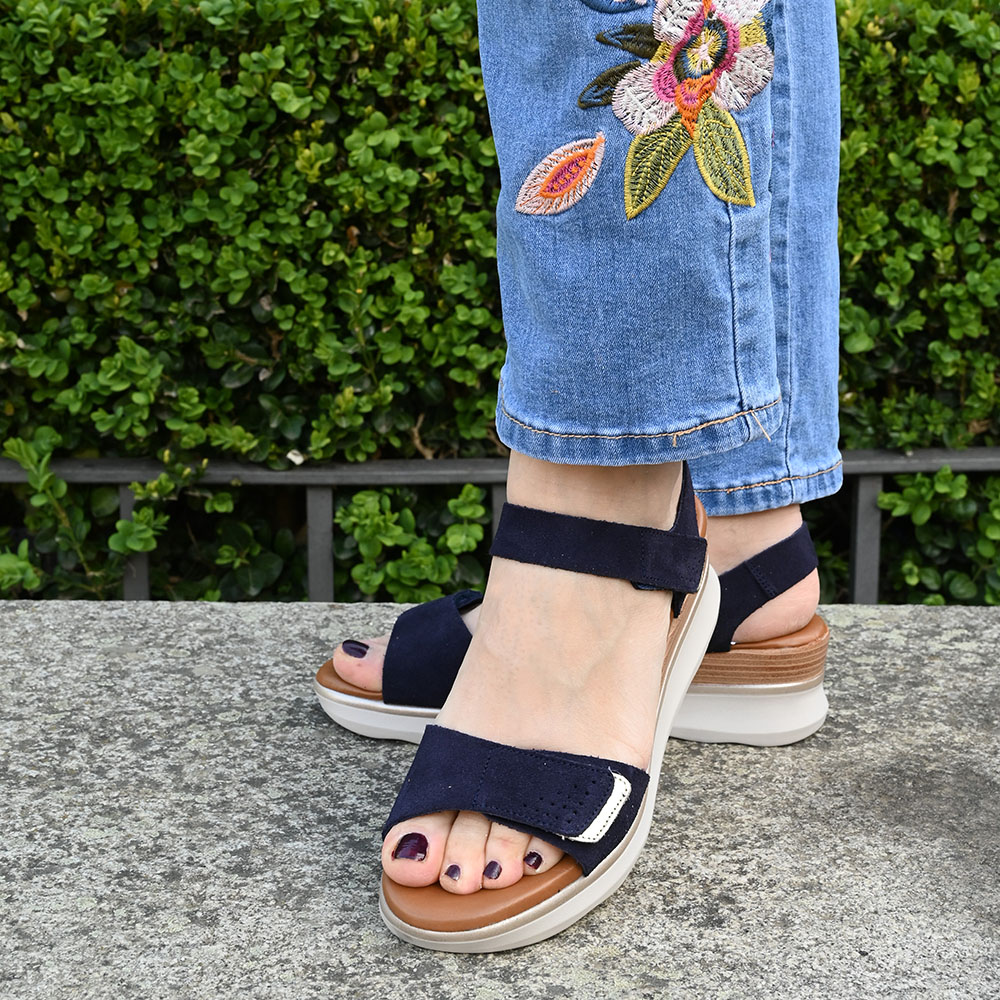 ✔︎ Zapato Artesanal: hecho en piel serraje azul marino con detalles en piel metalizada champan.