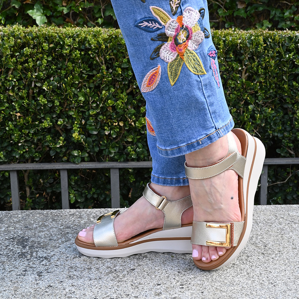 ✔︎ Suela: Plataforma ultraligera. Altura de cuña 5,5 cm que disminuye a 2,5 cm