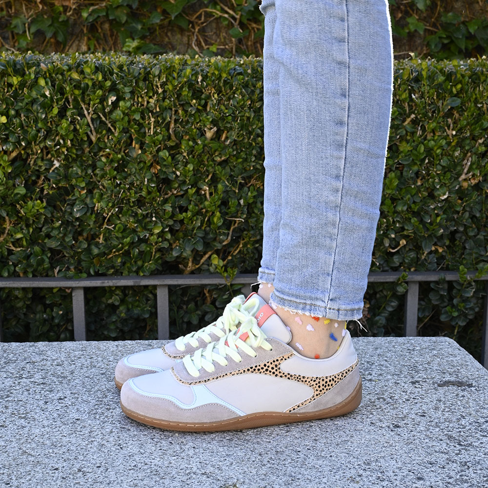 Zapatillas de piel con estampado de guepardo y acentos de color. Cuentan con plantilla extraíble. Diseñadas siguiendo las tendencias minimalistas para garantizar la pisada natural.