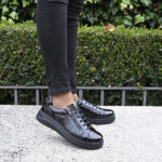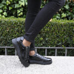 El comodín perfecto; comodidad y ligereza con una estética de acabado charol negro rugoso que dará a tu outfit el toque TOP mas sublime