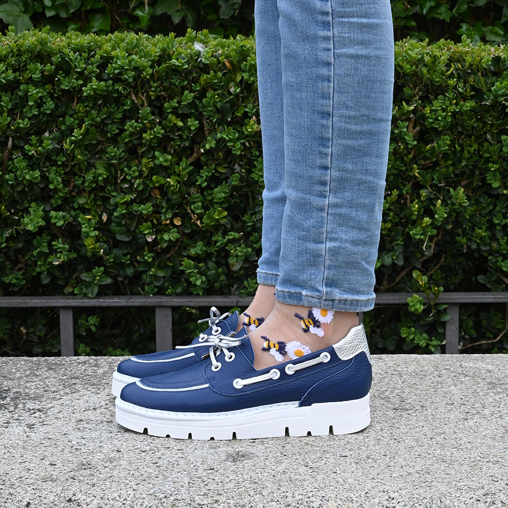 El modelo Laura fusiona el clásico concepto de un náutico con la frescura de una linea casual y sport, gracias a su suela ultra ligera de estilo deportivo.