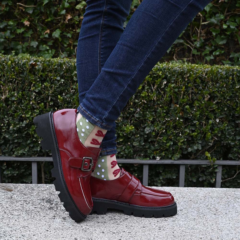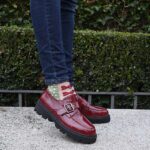 En el caso de Larissa hemos apostado por el color burdeos con efecto charol rugoso, consiguiendo una combinación super TOP, con un diseño inspirado en los blucher.