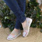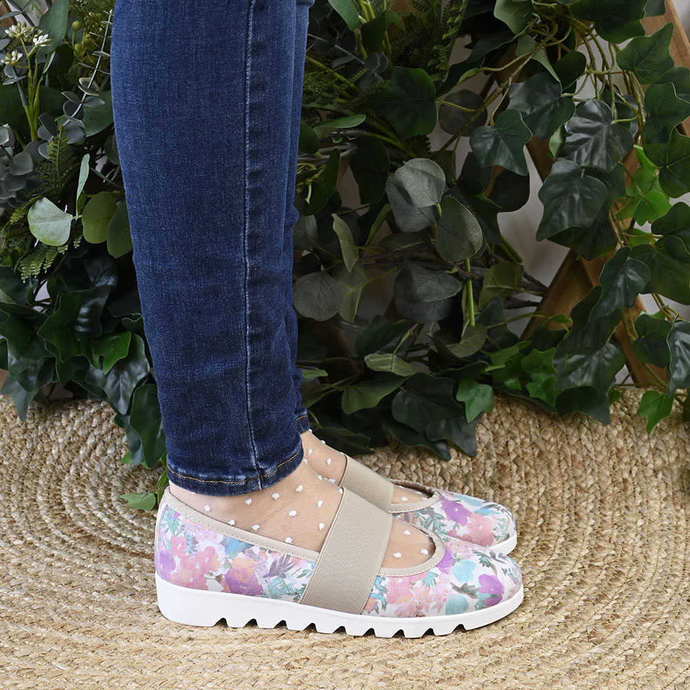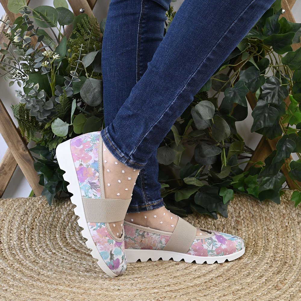 Imagina llevar la frescura de la primavera contigo en cada paso. Este zapato reinventa la clásica comodidad diaria transformándola en una pequeña obra de arte.