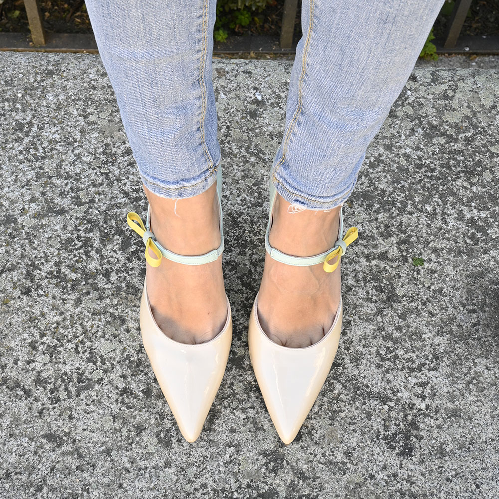 ✔︎ Zapato Artesanal: Exterior de piel napa en tonos pastel y piel charol. Interior de piel .