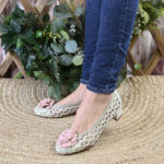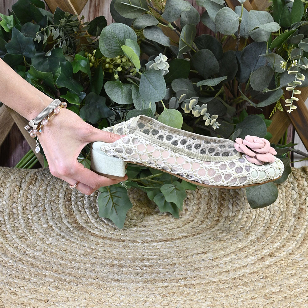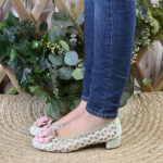 ✔︎ Zapato Artesanal: Piel ante y tejido de rejilla con trenzado. La flor, también en ante esta hecha de forma totalmente artesanal.