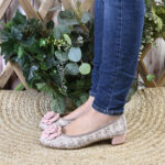 ✔︎ Zapato Artesanal: Piel ante y tejido bordado. La flor, también en ante esta hecha de forma totalmente artesanal.