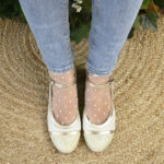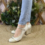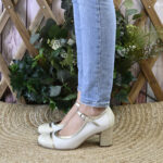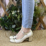 Su silueta Mary Jane, con esa icónica pulsera que abraza el empeine, es un tributo a la feminidad clásica, mientras que su tacón geométrico con patrón de espiga añade un toque de modernidad arquitectónica. Es el equilibrio perfecto: la delicadeza de una joya y la firmeza de quien pisa con seguridad.