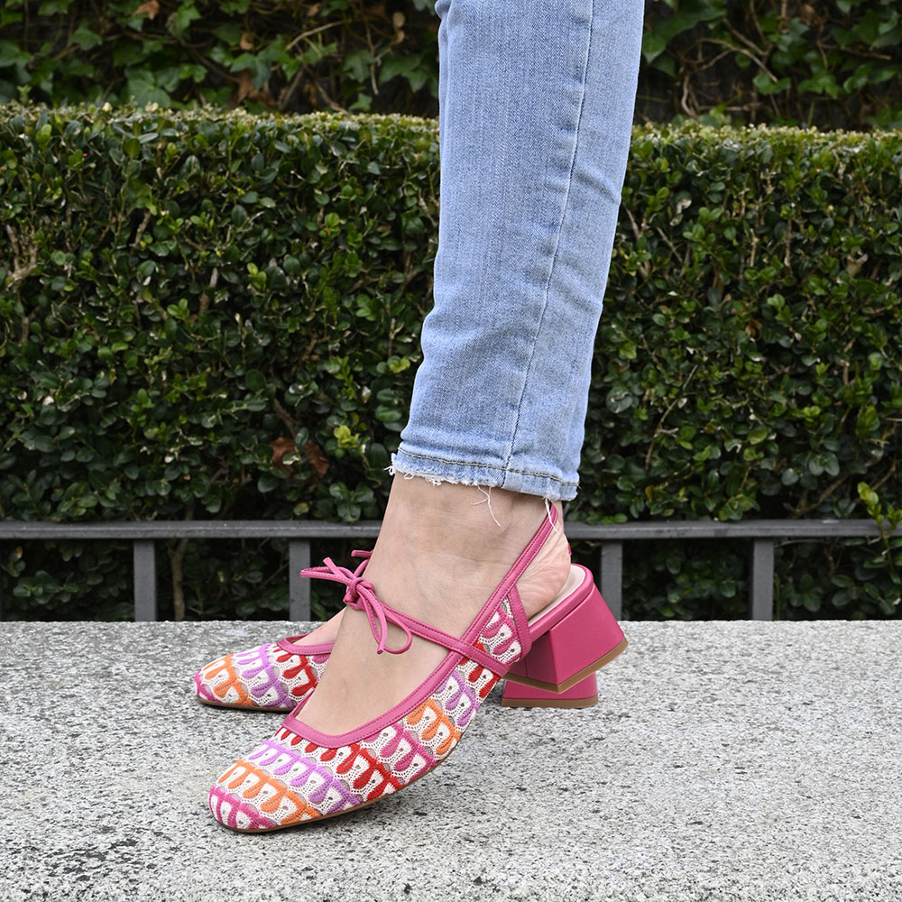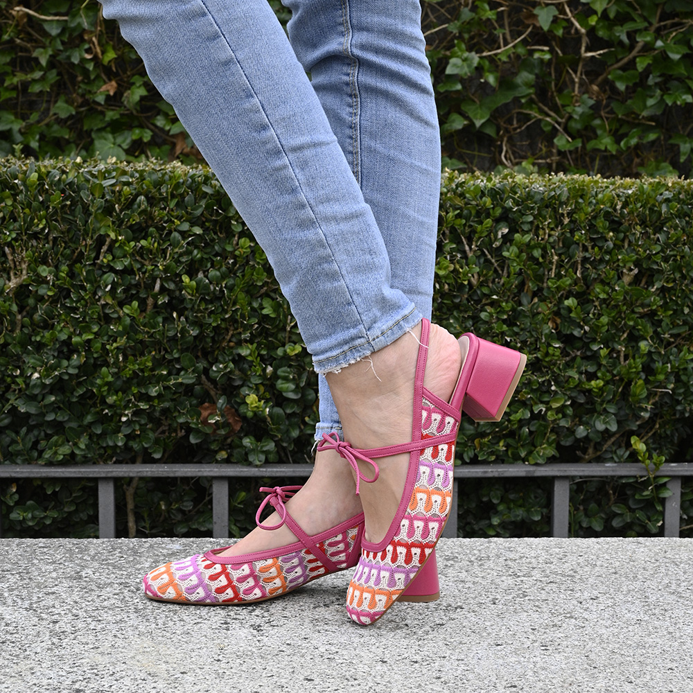 El modelo Ocori no es solo un calzado, es una oda a la feminidad contemporánea que fusiona la delicadeza del encaje artesanal con una explosión de color vibrante.